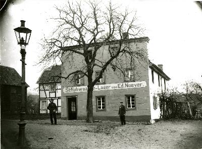 Rechts neben dem Wohnhaus Fischbach lag das Schuhwarenlager von Ed. Noever. Das Haus wurde im 2. Weltkrieg zerstört.