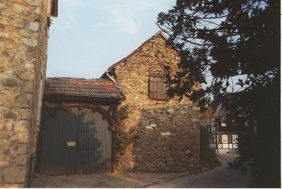 Hofeinfahrt neben dem Haus Burggraben Nr. 1 Das Tor wurde vor einer Reihe von Jahren (angeblich) wegen Baufälligkeit abgerissen, ebenso das rechte Bruchsteingebäude. Die Zusage es später wieder aufzubauen wurde nie eingehalten.