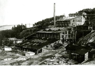 Die Grube Lüderich, größter Grubenkomplex im Bensberger Erzrevier. Das Foto zeigt die im Jahre 1896 errichtete Erz-Aufbereitungsanlage unterhalb des Zentralschachtes.
