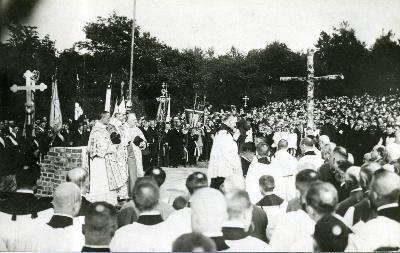 Grundsteinlegung durch den apostolischen Nutius Eugenio Pacelli dem spätere Papst Pius XII. am 29. Juni 1926.